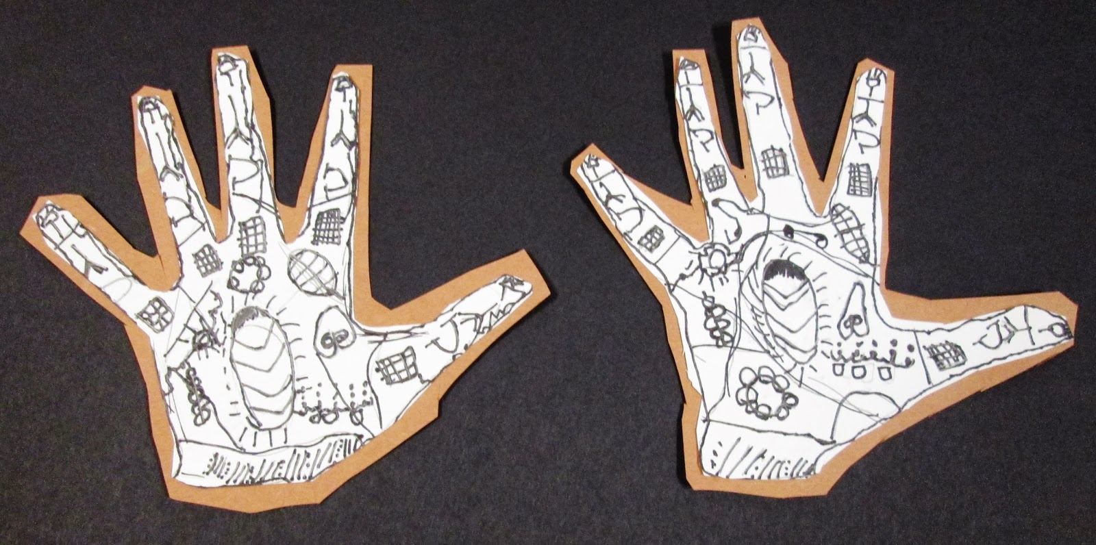 Seconds learned about culture with this instant classic from last year. First we traced our hands, then added lines, symbols, shapes, and patterns using an ultra-fine Sharpie marker inspired by Indian Mehndi designs. Take a look!